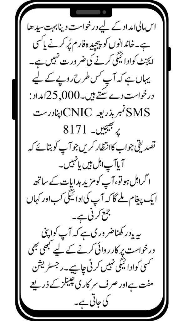 The 8171 Ehsaas Program 25000 scheme is a special emergency cash package launched under BISP to help deserving families tackle economic challenges. Unlike regular quarterly payments, this amount is provided as extra support to help families facing urgent financial needs. Whether it’s sudden medical expenses, household bills, or school fees, the extra Rs. 25,000 can make a big difference for countless households.