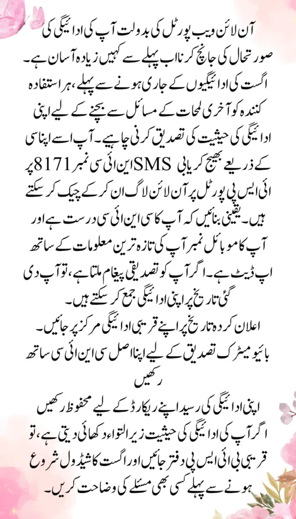 Checking your payment status is now easier than ever, thanks to the online 8171 web portal. Before the August payments are released, every beneficiary should confirm their payment status to avoid last-minute issues. You can check this by sending your CNIC number to 8171 via SMS or by logging into the 8171 BISP portal online. Make sure your CNIC is valid and your mobile number is updated with your latest information. If you get a confirmation message, you can collect your payment on the given date.