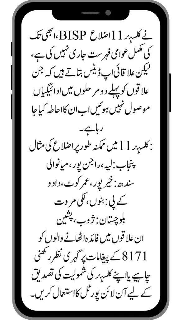 As of now, BISP has not released the full public list of Cluster 11 districts, but regional updates suggest that areas that haven’t received payments in the first two phases are now being covered.